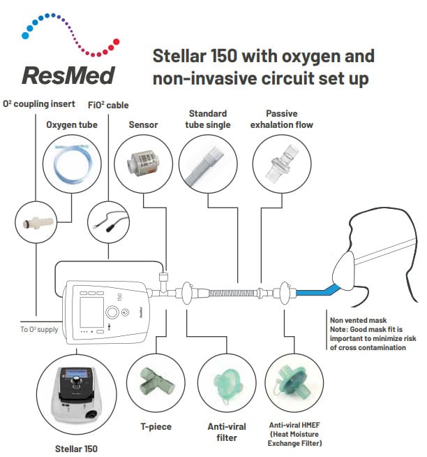 - תאימות מלאה למכשירי Stellar – מיועד במיוחד לשימוש עם ResMed Stellar 100 ו-150, ומשתלב בקלות עם מערכת החמצן.