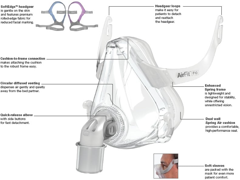 - יעילה: מסכת ה-AirFit F10 מספקת אטימה טובה, מה שמבטיח שתפעל כראוי.