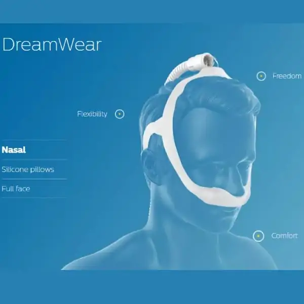 יתרון נוסף של DreamWear הוא היכולת להחליף סוגי כריות בקלות – אפית, מתחת לאף או כרית אף רגילה – ללא צורך להחליף את כל המסכה. כך תוכל למצוא את ההתאמה המושלמת עבורך בפשטות ובמהירות.