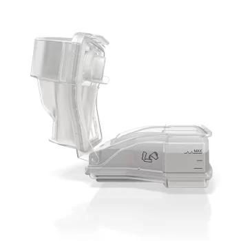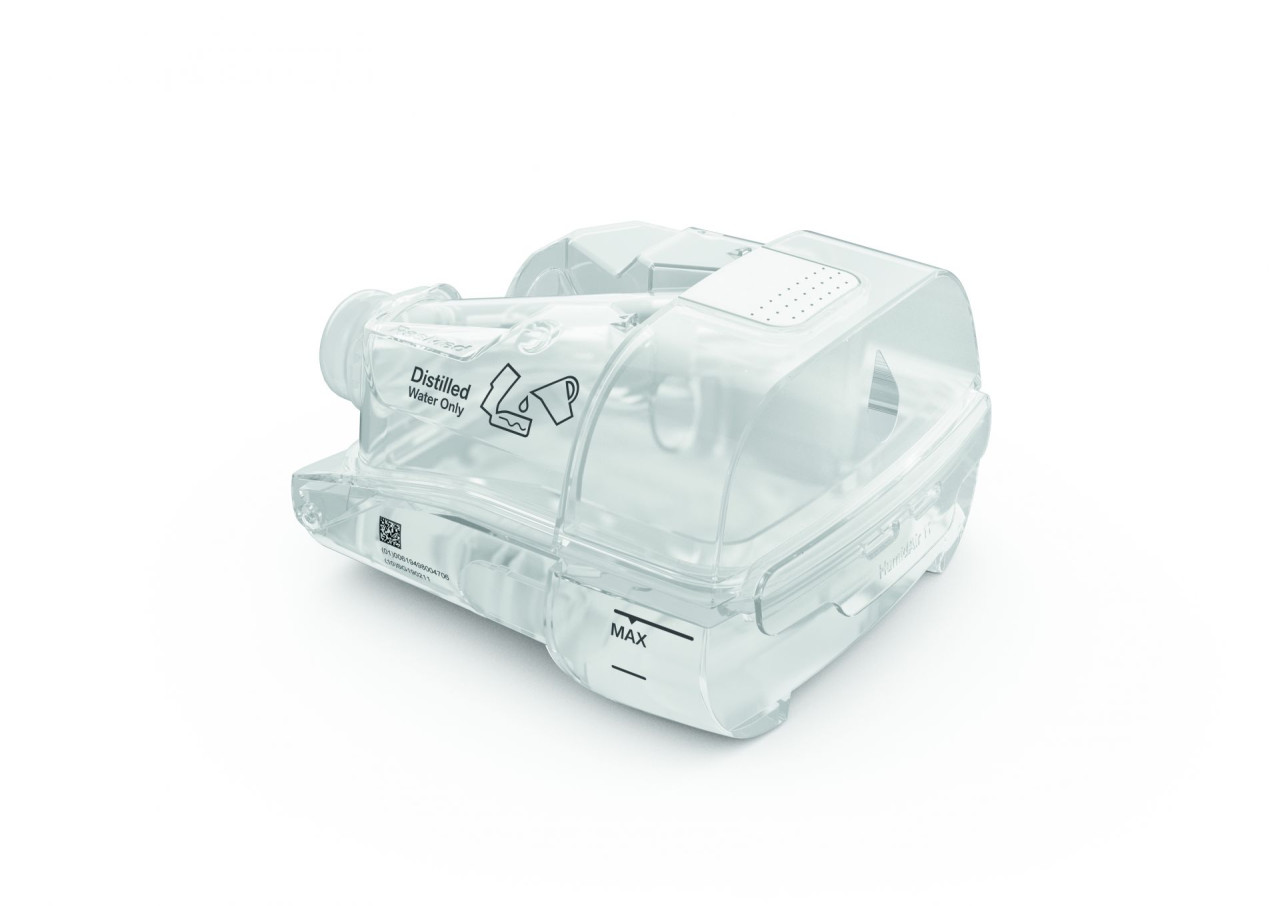 בטיחות: אין למלא את המיכל כשהוא מחובר למכשיר ה-CPAP; יש להוציא אותו, למלא, ורק אז להחזירו למקום.