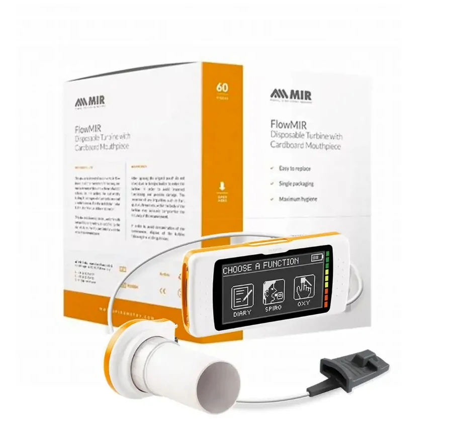 ספירומטר MIR SPIRODOC עם חיישן אוקסימטר ו-60 טורבינות FLOWMIR