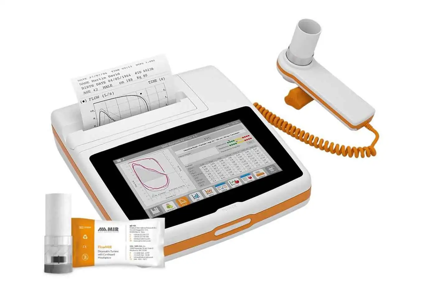 ספירומטר Spirolab® MIR עם 60 טורבינות FlowMir מציע חוויית בדיקה קלינית מתקדמת, מדויקת ונוחה במיוחד למרפאות, מומחי ריאות ומכוני תפקודי ריאה. מדובר במכשיר נייד ועוצמתי המשלב טכנולוגיה מודרנית, ניתוח נתונים חכם ותפעול פשוט — וכולל את כל הפונקציות הדרושות לבדיקות נשימה מקצועיות ברמה הגבוהה ביותר.