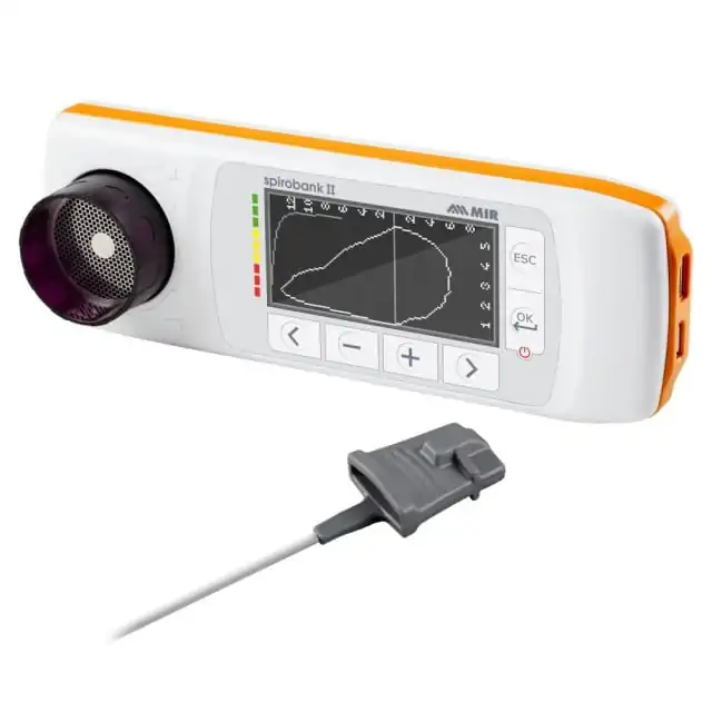 MIR Spirobank II Smart עם מודול אוקסימטריה הוא ספירומטר מקצועי מתקדם המשלב טכנולוגיה רפואית חדשנית עם שימוש פשוט ונוח דרך סמארטפונים, טאבלטים ומחשבי Windows. המכשיר מתאים במיוחד למרפאות משפחה, רפואת קהילה ומומחי ריאות, ומאפשר ביצוע, תיעוד וניתוח בדיקות תפקודי נשימה ברמת דיוק גבוהה ובזמן אמת.